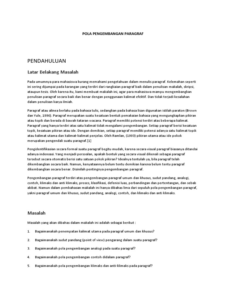 Contoh soal pola pengembangan paragraf. Maybe you would like to learn more about one of these? Check spelling or type a new query. We did not find results for: